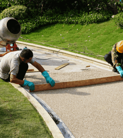 The mixed LessonBound resin should then be introduced into the mixer containing the previously mixed aggregate. A rotary mixer or low speed paddle mixer are suitable for mixing. Mix for 5 minutes until the mixture is uniformly coated.