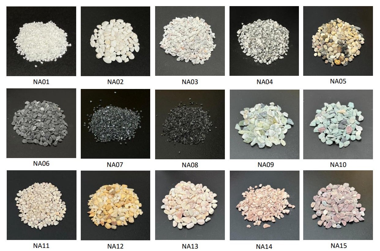 Add the Aggregates and Glow Stone to the Mixer and mix evenly. The aggregate must be dry (<0.5% moisture) and free from dust.